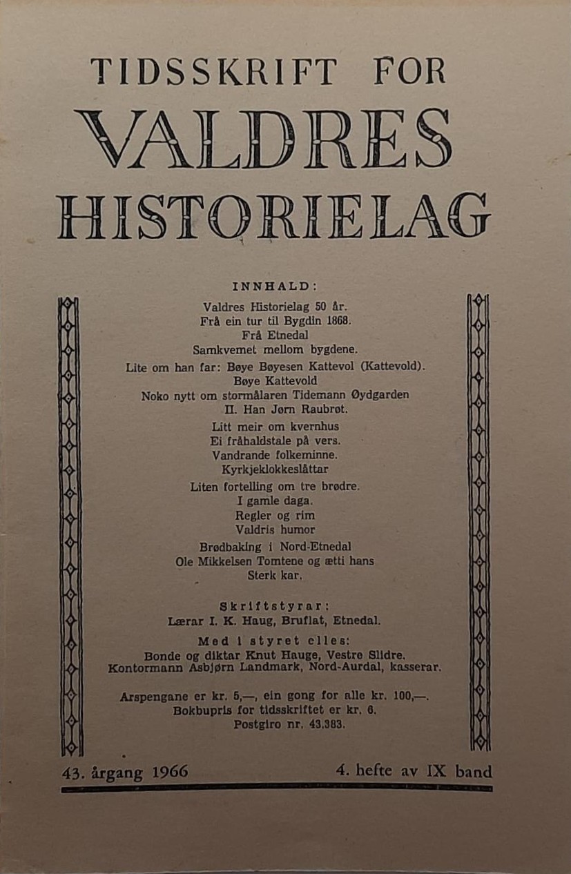 Tidsskrift for Valdres Historielag 43.årgang (Heftet)