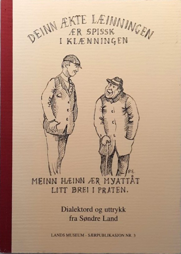 Deinn ækte Læinningen ærspissk i klænningen, meinn hæinn ær myattåt litt brei i praten av Marit Lien og Arvid Møller er en samling av dialektord og lokale uttrykk fra Søndre Land. Boken dokumenterer den særegne lokale språkbruken og inneholder forklaringer på ordvendinger, begreper og talemåter som har preget bygdekulturen i området gjennom generasjoner. Gjennom tekstene får leseren et innblikk i både humoren og hverdagen knyttet til dialekten i Søndre Land, noe som gjør boken til et viktig bidrag for bevaring av den lokale kulturarven.
