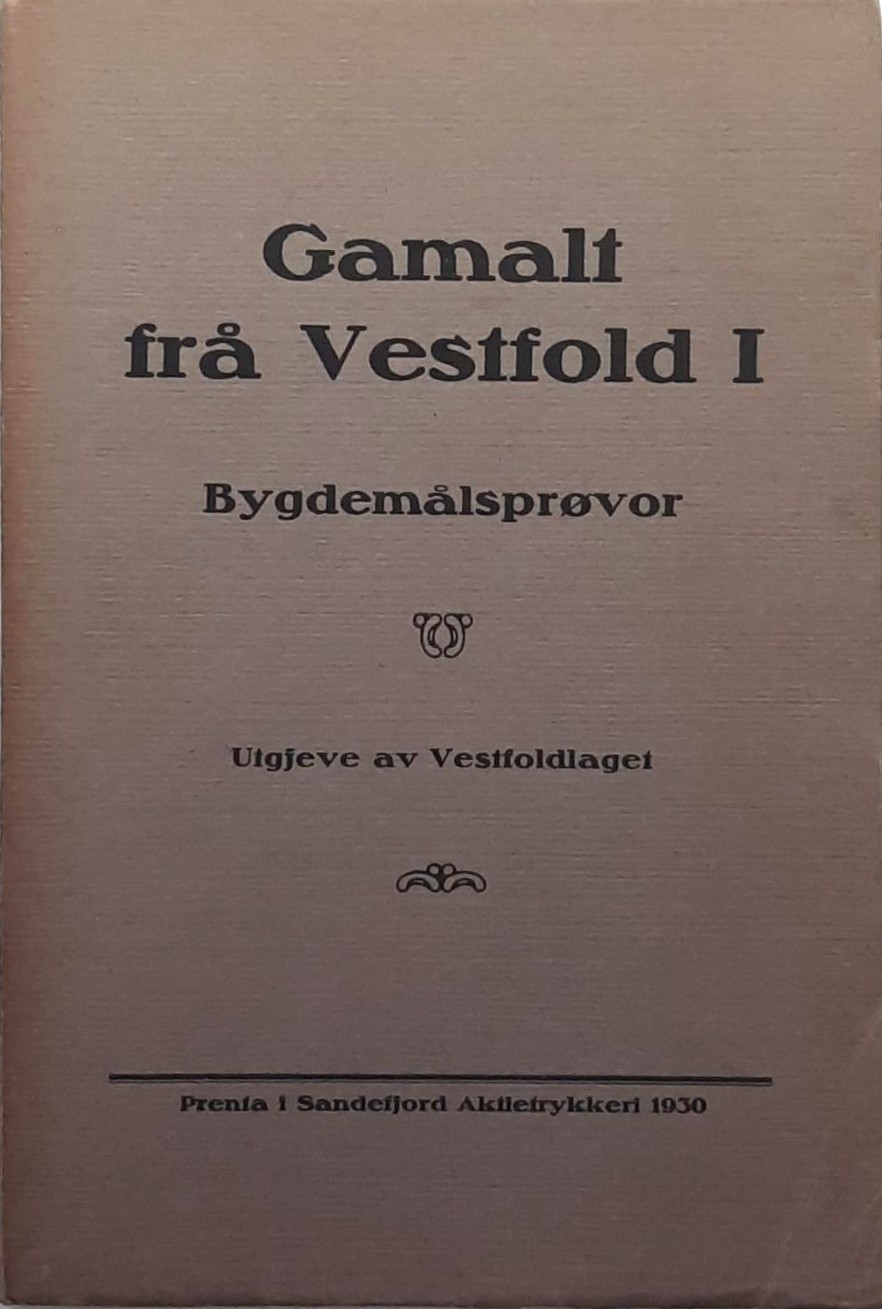 Gamalt frå Vestfold I - Bygdemålsprøvor (Heftet)
